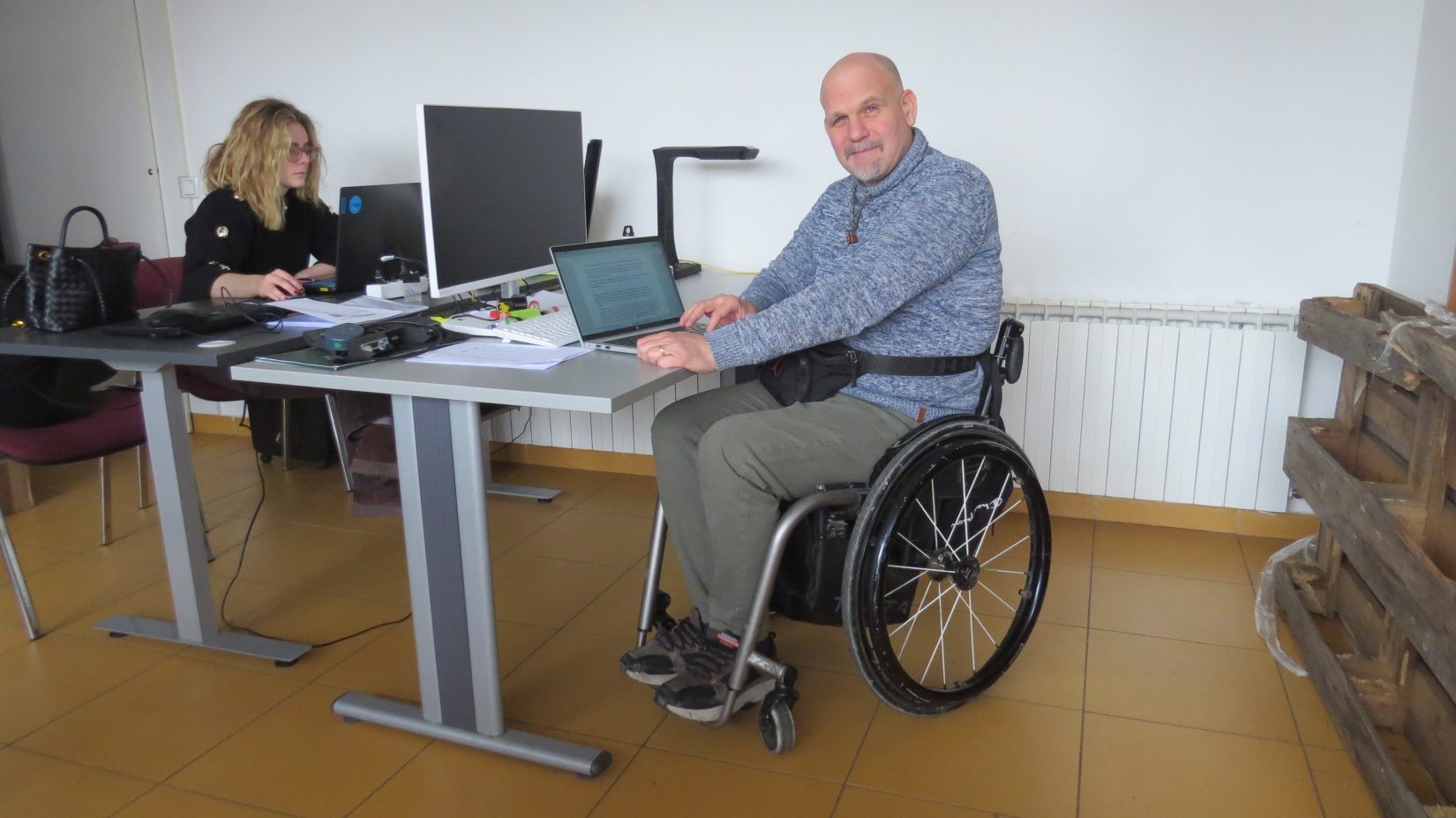 – Nas je tu u uredu 12, od toga nas je 9 osoba s invaliditetom. Čude se kad nas vide kako puno radimo, i slijepi, i u kolicima, i da nema tu nekog radnog vremena. Kad treba napisati projekt ostat ćemo i do 10 sati navečer ako treba, baš kao što bi i u nekoj tvrtki u privatnom sektoru. Ja radim na laptopu po 14 sati dnevno. Mi smo generacija koje je naučila boriti se za sebe – veli Marijon koji je iz Rijeke u Zagreb došao 2002, jer u ono vrijeme kao paraplegičar u invalidskim kolicima nije mogao studirati u Rijeci. U Zagreb se prije 20-tak godina dolazilo studirati iz cijele Hrvatske jer su ovdje bili najbolji uvjeti.