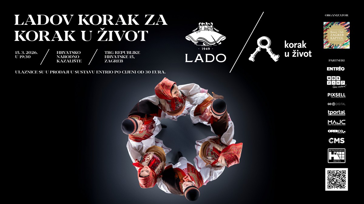 Ansambl narodnih plesova i pjesama Hrvatske LADO treću godinu za redom održat će humanitarni koncert u sklopu jedne od najdugovječnijih humanitarnih akcija “Korak u život” koju je pokrenuo Rotary klub Zagreb Kaptol.